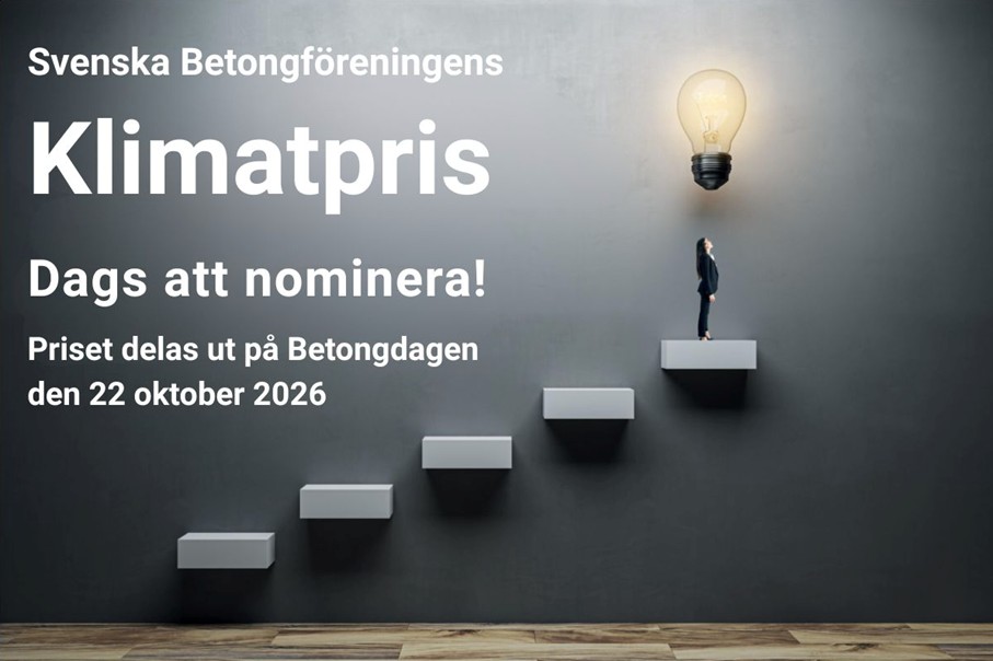 Svenska Betongföreningens Klimatpris delas ut under Betongdagen 2026, årets största och mest seriösa samling inom betongsektorn, den 22 oktober i Stockholm.